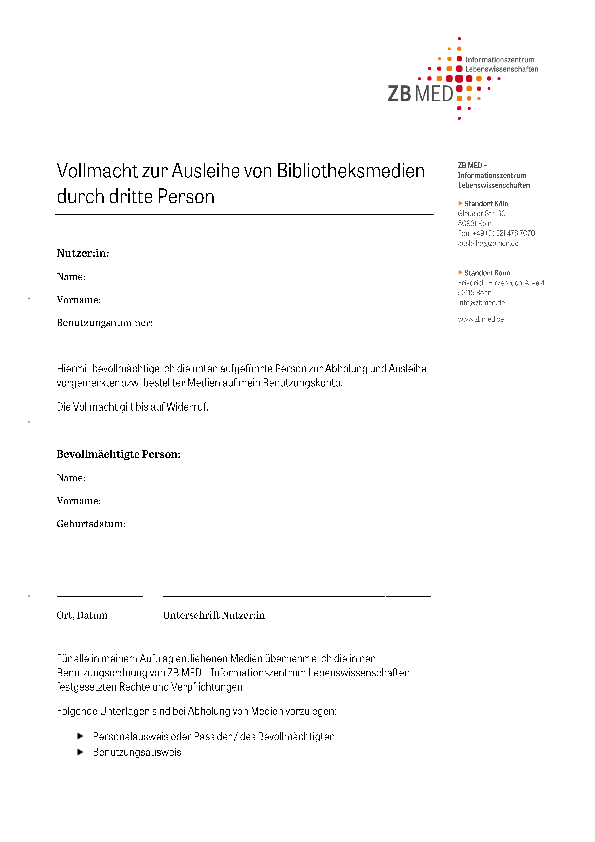 | Adresse: | ZB MED – Informationszentrum Lebenswissenschaften Gleueler Straße 60 50931 Köln |