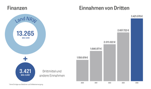 - Gesamtetat: 13,265 Millionen EUR + 3,421 Millionen EUR Drittmittel und andere Einnahmen